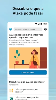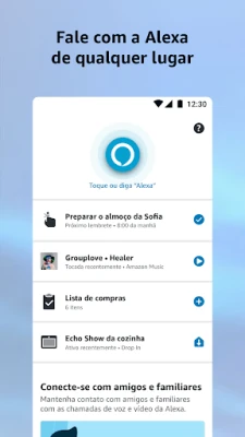 Descubra o app Amazon Alexa: configure seus dispositivos, ouça músicas, organize suas compras e acesse notícias. A Alexa aprende e se adapta, tornando sua interação cada vez mais personalizada e intuitiva, melhorando sua experiência de casa inteligente.