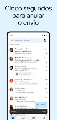 Gerencie sua vida digital com a confiança e a eficiência que só o Gmail oferece. Mais de 99,9% das ameaças – de spam invasivo a tentativas de phishing e links perigosos – são automaticamente interceptadas antes mesmo de chegarem à sua caixa de entrada, garantindo um ambiente seguro para suas comunicações. Com o Gmail, você tem o poder de desfazer o envio de mensagens, evitando equívocos constrangedores, e de organizar rapidamente sua correspondência. Deslize para arquivar ou excluir, receba notificações instantâneas e encontre qualquer e-mail em segundos com a busca preditiva e precisa.