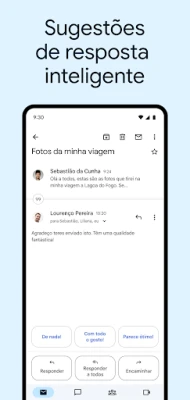 Seja para uso pessoal ou profissional, o Gmail permite alternar facilmente entre múltiplas contas, garantindo que todas as suas comunicações estejam ao seu alcance. Mantenha sua caixa de entrada impecável com marcadores personalizados, destaque e-mails importantes com estrelas e gerencie convites do Calendário Google diretamente, sem interrupções. Parte integrante do Google Workspace, o Gmail capacita sua equipe a comunicar, criar e colaborar com eficiência incomparável. E para quem está sempre em movimento, acesse rapidamente suas mensagens com o mosaico e a complicação do Gmail no seu relógio Wear OS, mantendo você conectado em todos os seus dispositivos.
