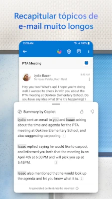 O Outlook para Android conecta e-mail, calendário e ficheiros num só lugar. Reestruturado para otimizar a sua produtividade, oferece uma caixa de entrada avançada e integrada para uma gestão conveniente e eficiente das suas comunicações.