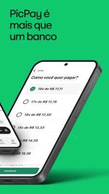 Com PicPay: Conta, Cartão e Pix, sua vida financeira é mais fácil. Tenha uma conta digital gratuita que rende a 102% do CDI, faça Pix e parcele suas compras. Acesse o Crédito do Trabalhador com juros reduzidos e pague direto na folha, tudo em um só lugar.