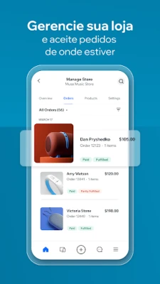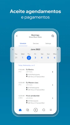 A gestão do seu empreendimento online torna-se simplificada com o Wix, permitindo supervisionar seu negócio diretamente do seu dispositivo móvel. Para quem possui uma loja virtual, é possível monitorar pedidos e vendas em tempo real, ajustar preços e disponibilidade de produtos instantaneamente, e analisar tendências com relatórios detalhados. Se você oferece serviços, a plataforma facilita a criação e atualização de ofertas, a aceitação de agendamentos e o processamento de pagamentos online de forma segura e sem comissões, além de auxiliar na administração de calendários, equipes e clientes. Impulsione sua marca com recursos de marketing poderosos e aproveite ferramentas gratuitas como o gerador de nomes de negócios e de faturas para uma administração completa.
